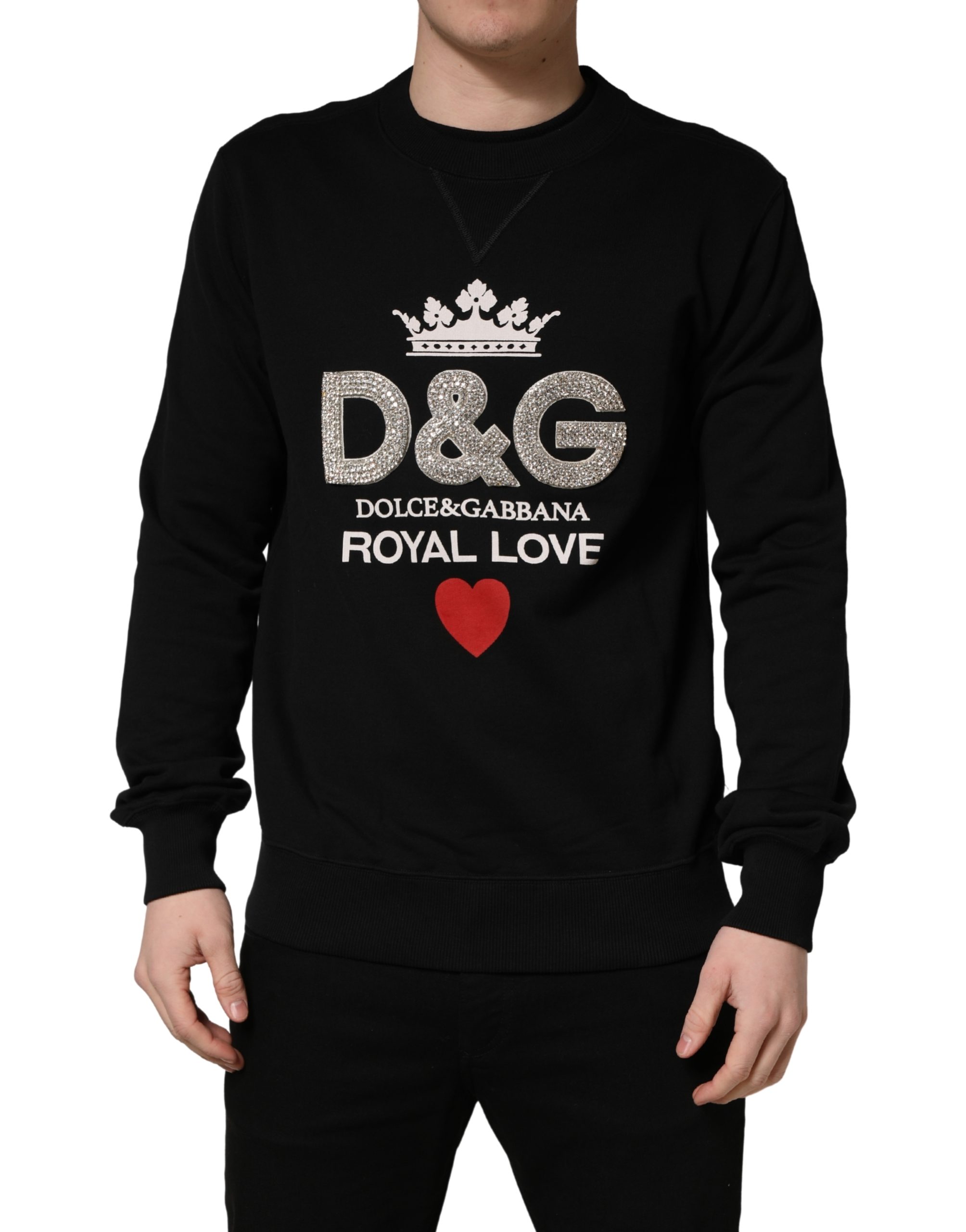 Dolce & Gabbana Black Embellished Cotton Sweatshirt Sweater