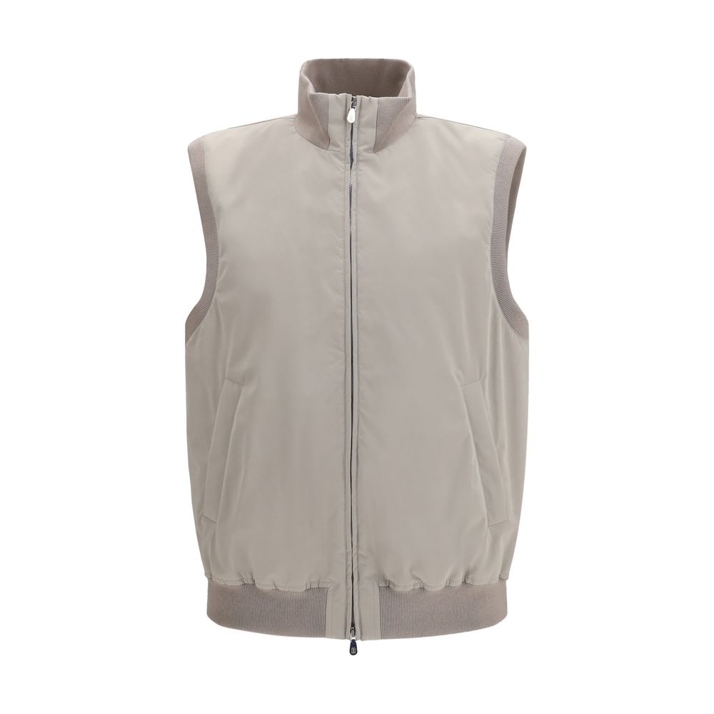 The sleeveless Vest Jacket by Brunello Cucinelli is an elegant and functional piece featuring a two-way front...