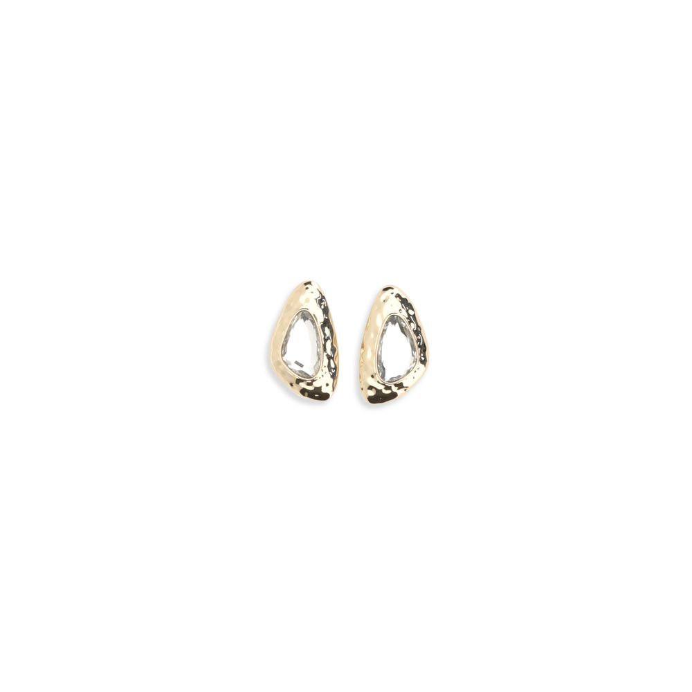 The Golden Hammered Crystal Earrings by Self-Portrait, inspired by 1970s glamour, feature a geometric design with sparkling...