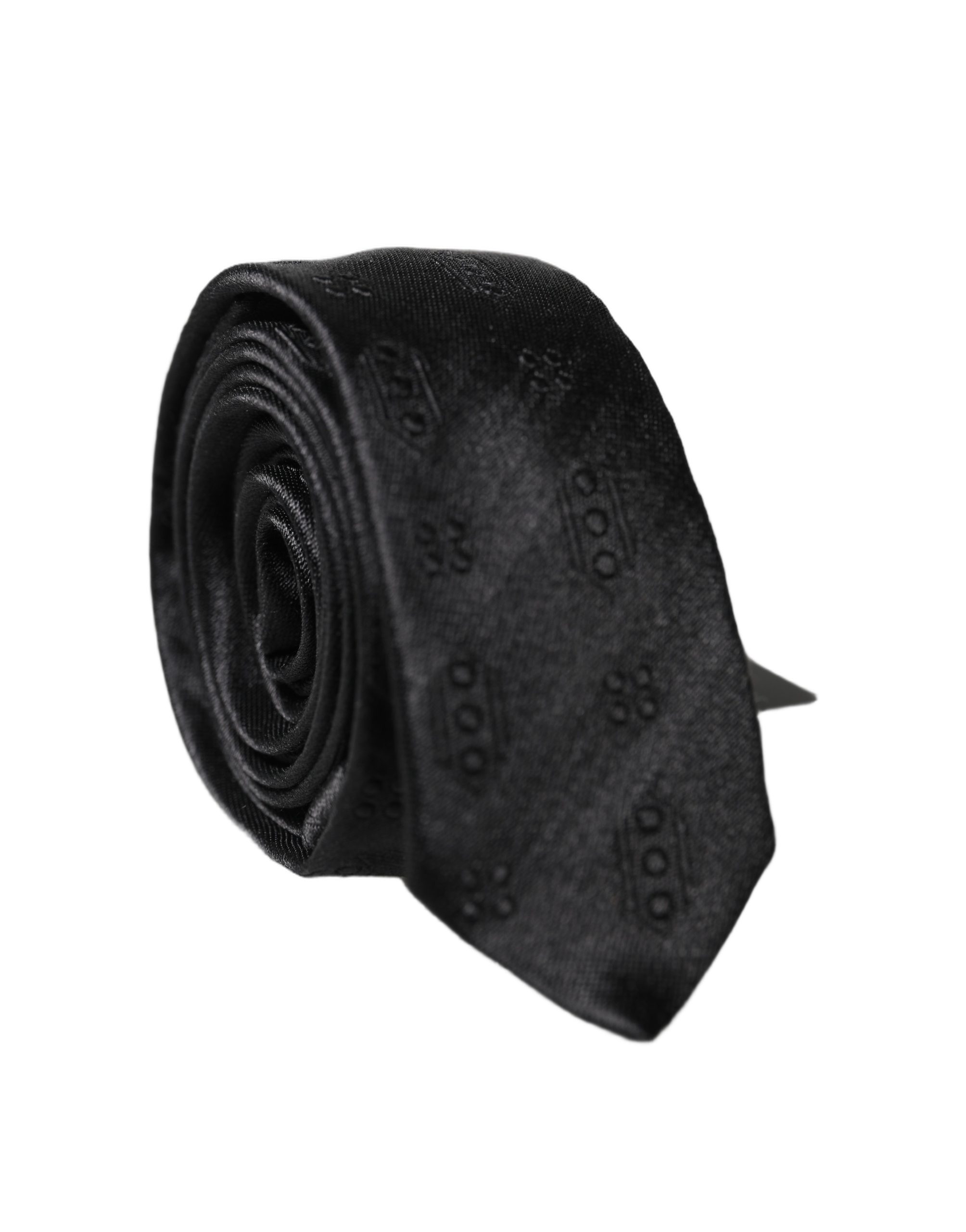 Dolce & Gabbana Black Patterned 100% Silk Adjustable Men Necktie Tie