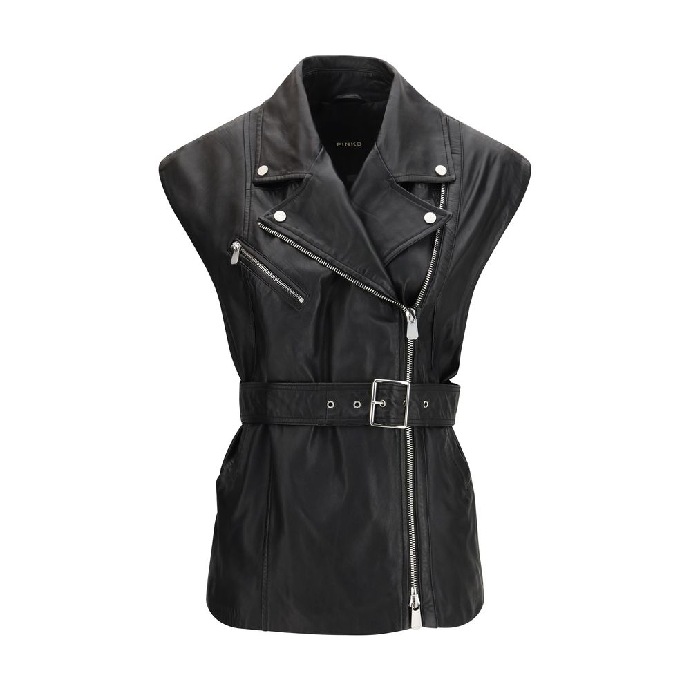 PINKO Black Goatskin Sleveless Jacket