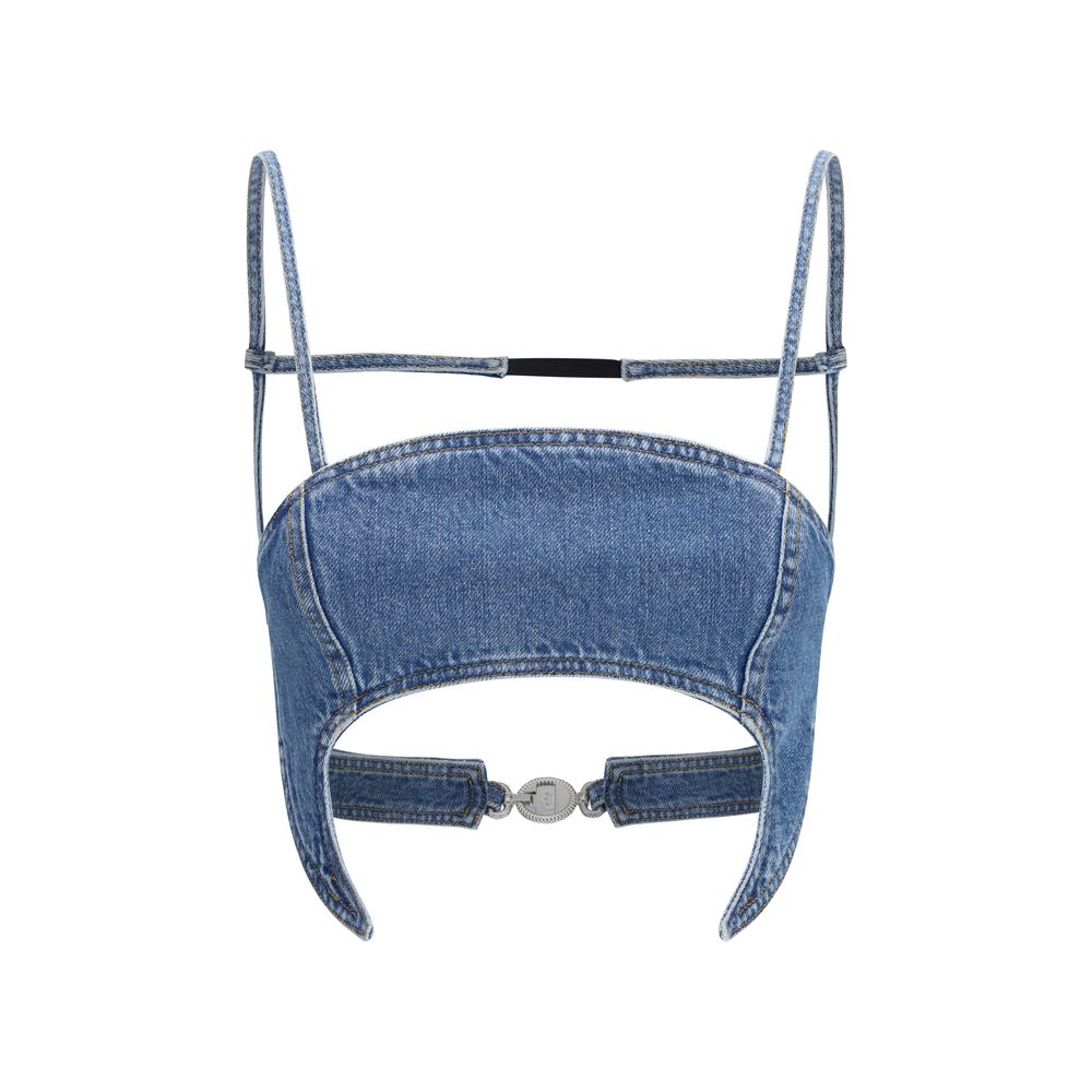 The denim moon Top in organic cotton by Marine Serre stands out for its bold and contemporary...