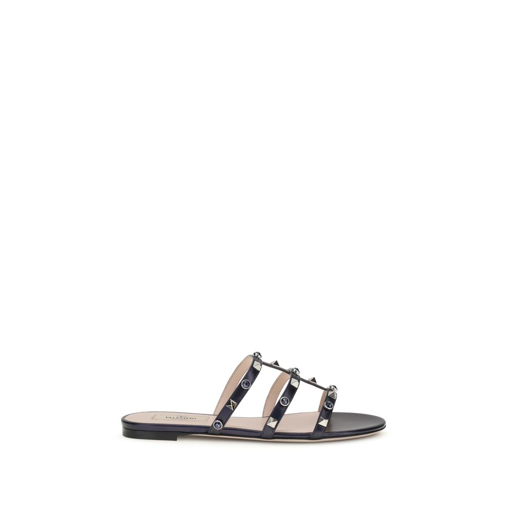 Valentino Garavani Blue Napa Leather / Calf Bos Taurus Flat Sandals