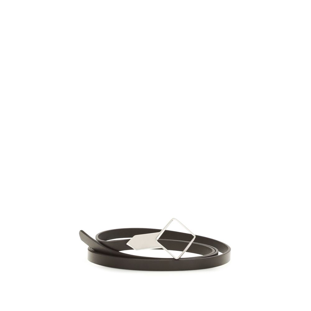 The Rhombe Belt by The Row is a slim accessory crafted from smooth leather, featuring a silver...
