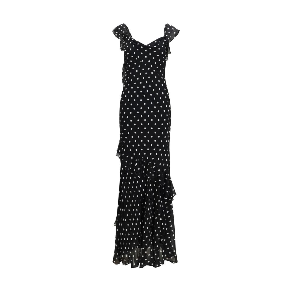 The jersey long Dress by Self-Portrait features a fit-and-flare silhouette that enhances the figure with a fluid...