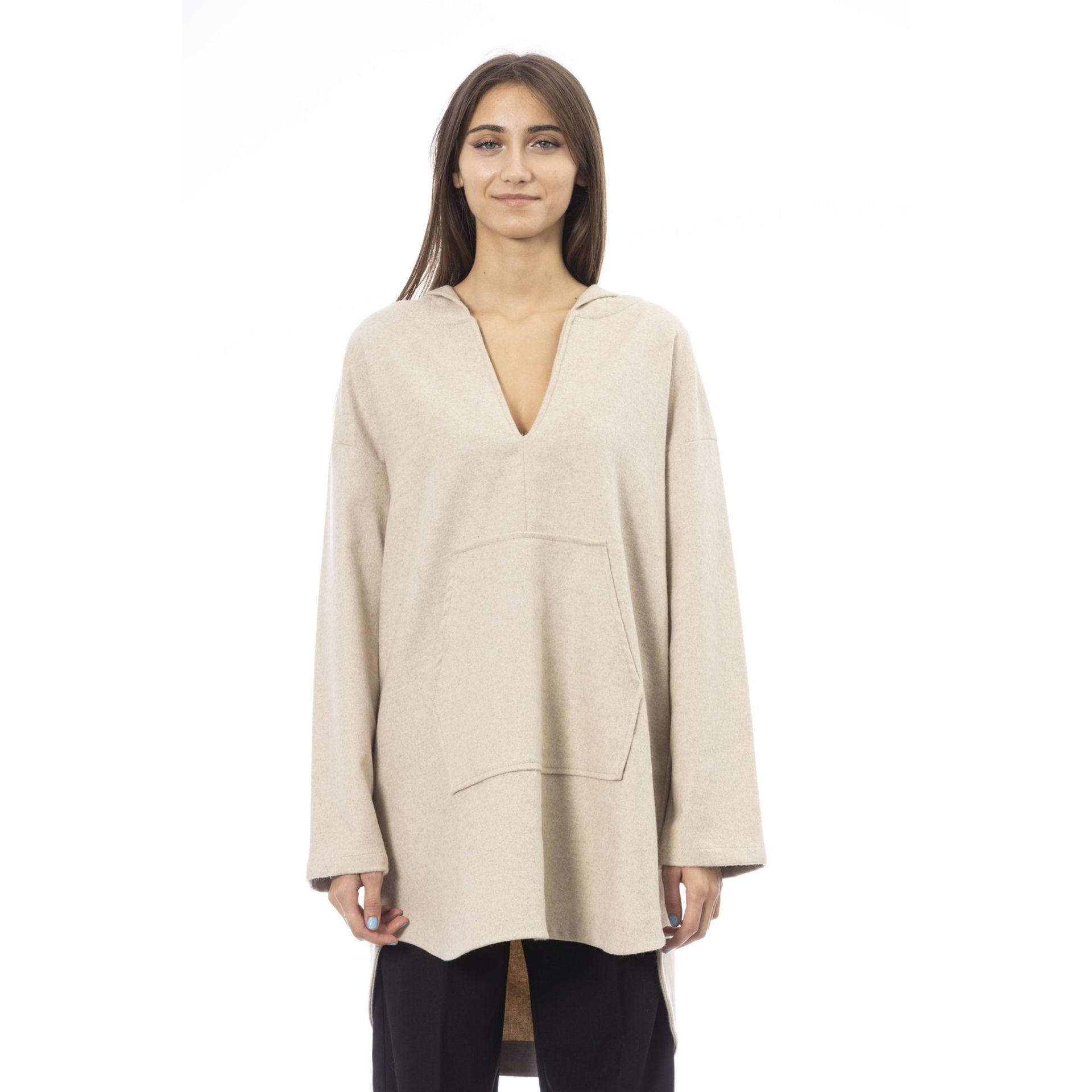 Made in:ItalyCollection:Fall/WinterGender:WomanType:SweaterSleeves:longExternal pockets:2Neckline:V-neckMaterial:other fibres 5%wool 60%polyamide 10%polyester 25%Pattern:solid colourHood:fixed