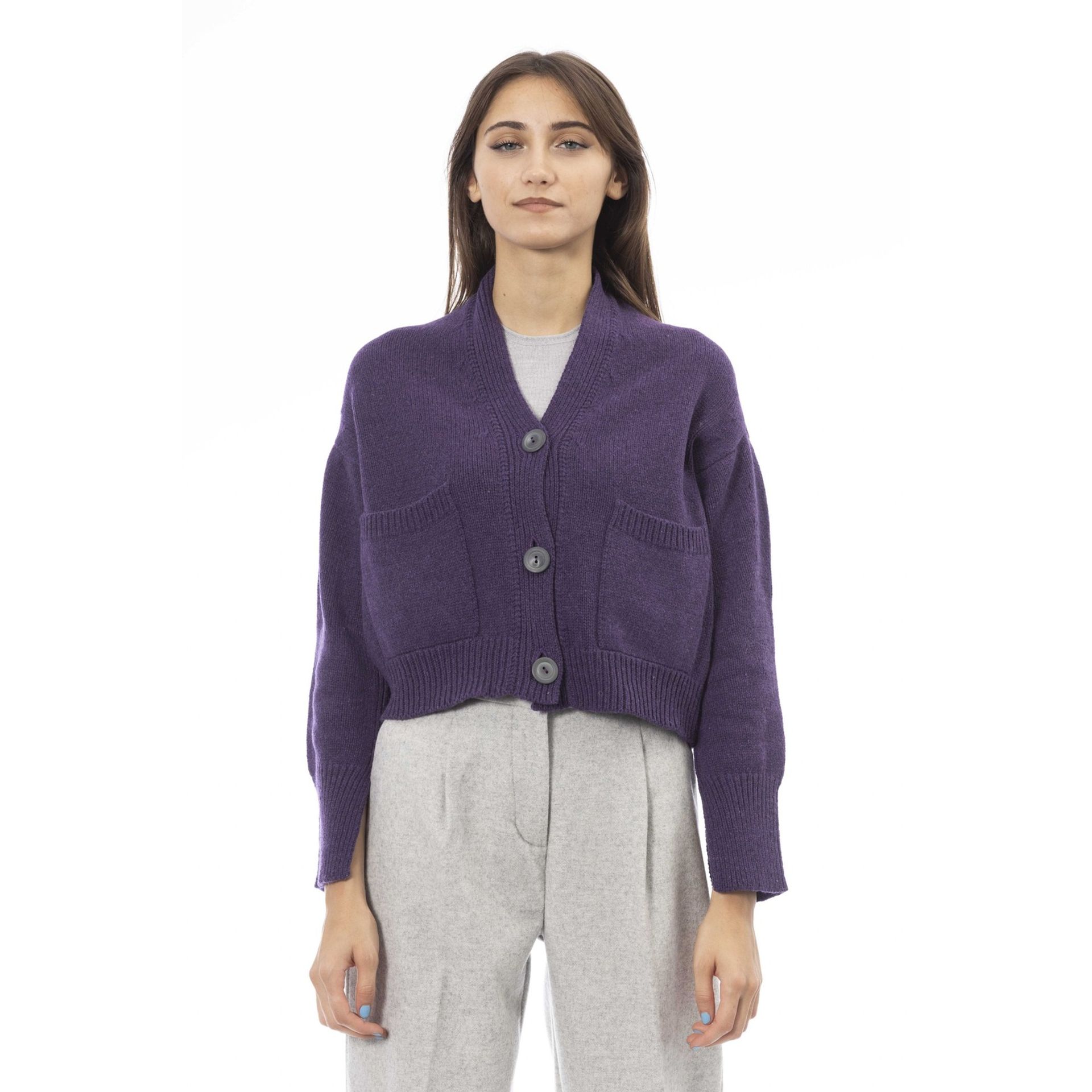 Made in:ItalyCollection:Fall/WinterGender:WomanType:SweaterFastening:buttonsSleeves:longNeckline:V-neckMaterial:wool 75%polyamide 25%Pattern:solid colourHems:ribbed